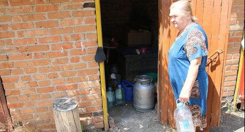 "Вчера привозили воду, я немного смогла набрать, но она очень воняет, и когда я ее перелила в тазик, на дне образовался налёт. Я даже стирать в этой воде боюсь, не хочу, чтобы поломалась стиральная машинка, новую купить для меня будет проблема", - рассказала она корреспонденту "Кавказского узла".