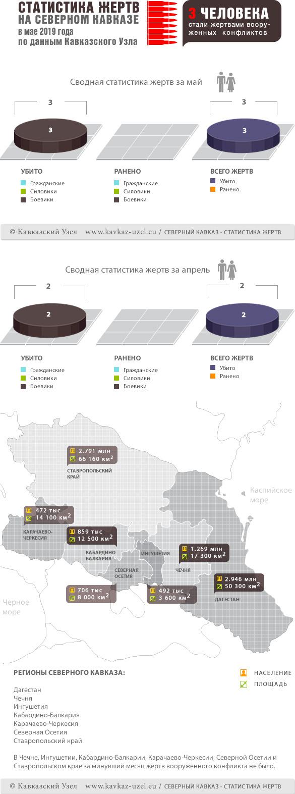 Инфографика. Статистика жертв на Северном Кавказе в мае 2019 года по данным Кавказского Узла