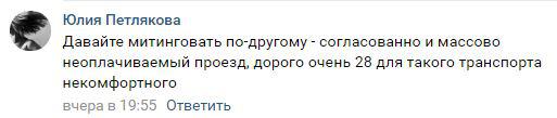 "Дорого очень 28 (рублей) для такого транспорта некомфортного", - прокомментировала Юлия Петлякова.