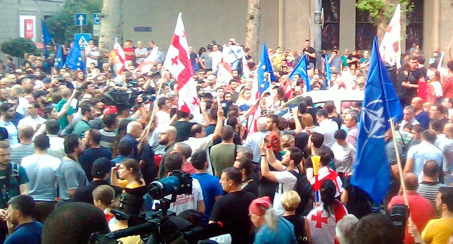 Акции протестов в Тбилиси начались 20 июня после того, как на заседании парламентской православной ассамблеи депутат Госдумы России Сергей Гаврилов занял кресло спикера грузинского парламента. Это вызвало недовольство части депутатов, которых поддержали сторонники оппозиции. Протестующие добились отставки спикера парламента и проведения выборов в 2020 году по пропорциональной системе, но их требование об отставке главы МВД Георгия Гахарии остается невыполненным.