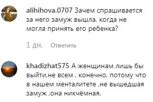 «А женщинам лишь бы выйти, не всем, конечно, потому что в нашем менталитете не вышедшая замуж, она никчёмная», - отвечает khadizhat575.