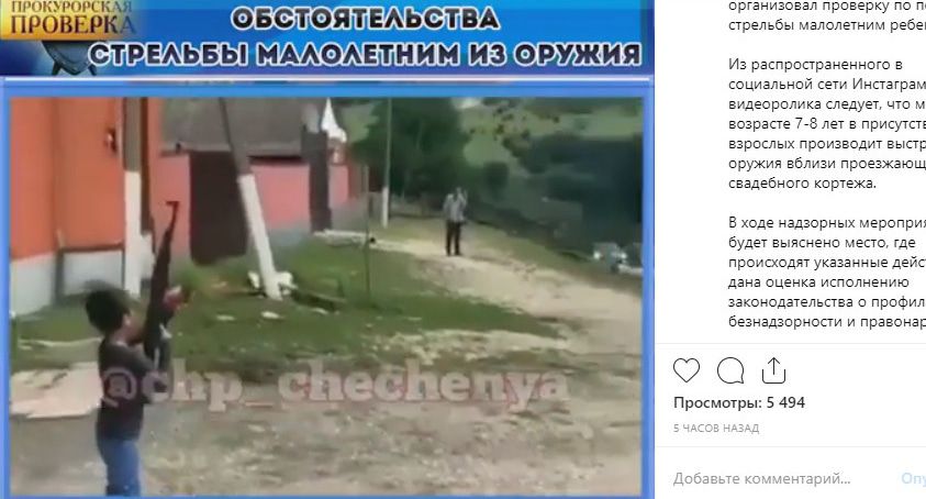 "Видеоролик получил широкое распространение в соцсетях - в частности, во "ВКонтакте" и Instagram. Это достаточно резонансное событие. Тем более что речь идет о стрельбе из боевого оружия несовершеннолетним ребенком, который подвергает опасности не только свою жизнь, но и жизни окружающих", - отметили сегодня корреспонденту "Кавказского узла" в прокуратуре Чечни.