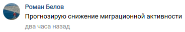 "Прогнозирую снижение миграционной активности", – написал Роман Белов.