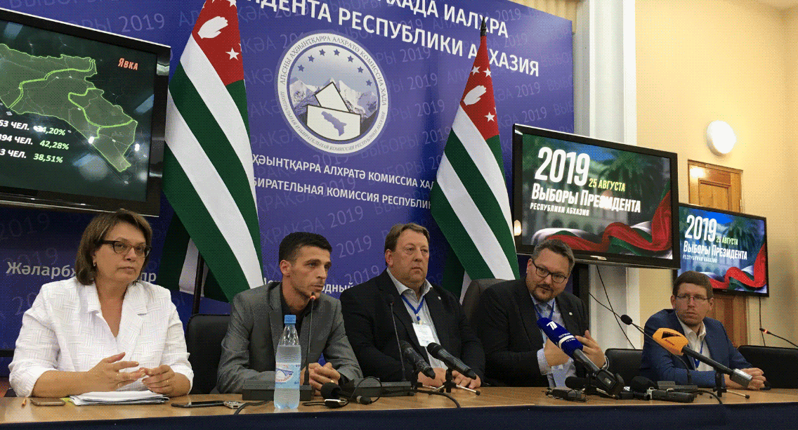 Как писал "Кавказский узел", по итогам подсчета более 50 тысяч из более 70 тысяч голосов действующий президент Рауль Хаджимба, бывший замминистра иностранных дел Олег Аршба и председатель оппозиционной партии "Амцахара" Алхас Квициния набрали почти одинаковое количество голосов избирателей - более 26%, более 25% и более 24% голосов соответственно. Три кандидата назвали неизбежным второй тур выборов, однако представители штабом Хаджимбы и Аршбы сочли этот прогноз преждевременным.