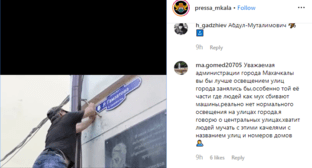 "Уважаемая администрация города Махачкалы, вы бы лучше освещением улиц города занялись бы, особенно той его части, где людей, как мух, сбивают машины. Реально нет нормального освещения на улицах города - я говорю о центральных улицах. Хватит людей мучить с этими качелями с названием улиц и номеров домов", - предложил ma.gomed20705.