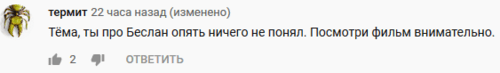 "Тёма, ты про Беслан опять ничего не понял. Посмотри фильм внимательно", – предложил Артемию Лебедеву пользователь с ником "термит".