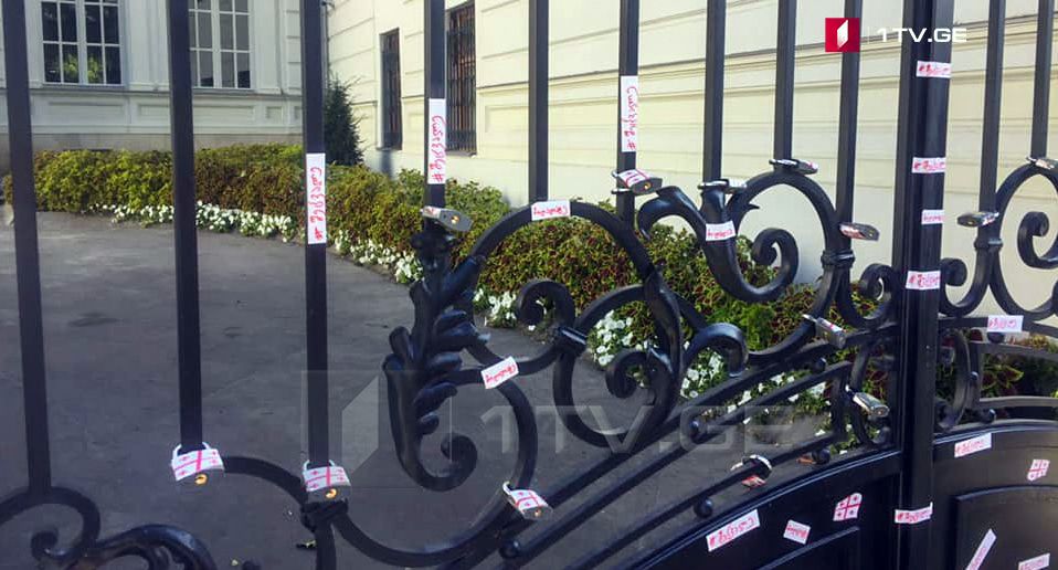 Члены молодежного движения повесили сегодня замки на ворота резиденции президента Грузии в знак протеста против помилования осужденных за убийства.