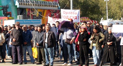На митинге, прошедшем в Элисте 13 октября, несколько присутствующих развернули плакаты с критикой бывшего главы республики Алексея Орлова. В это время на сцене выступал участник, который высказался в поддержку действующего главы республики Бату Хасикова. Его речь вызвала негативную реакцию участников акции, которые неодобрительно кричали, призывая спикера удалиться, передает присутствовавшая на акции корреспондент "Кавказского узла".