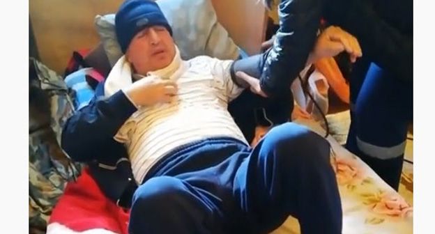 Издание также опубликовало видео, в котором показано, что пожилой мужчина лежит на кровати в верхней одежде. Люди, стоящие рядом, помогают ему раздеться. Возле кровати стоит женщина в форме с надписью "медицина катастроф", она опрашивает мужчину о состоянии его здоровья. Далее показано, как мужчины провожают выезжающую из двора машину скорой помощи. Видео опубликовано сегодня также на Youtube, где к 21.00 мск набрало 105 просмотров.