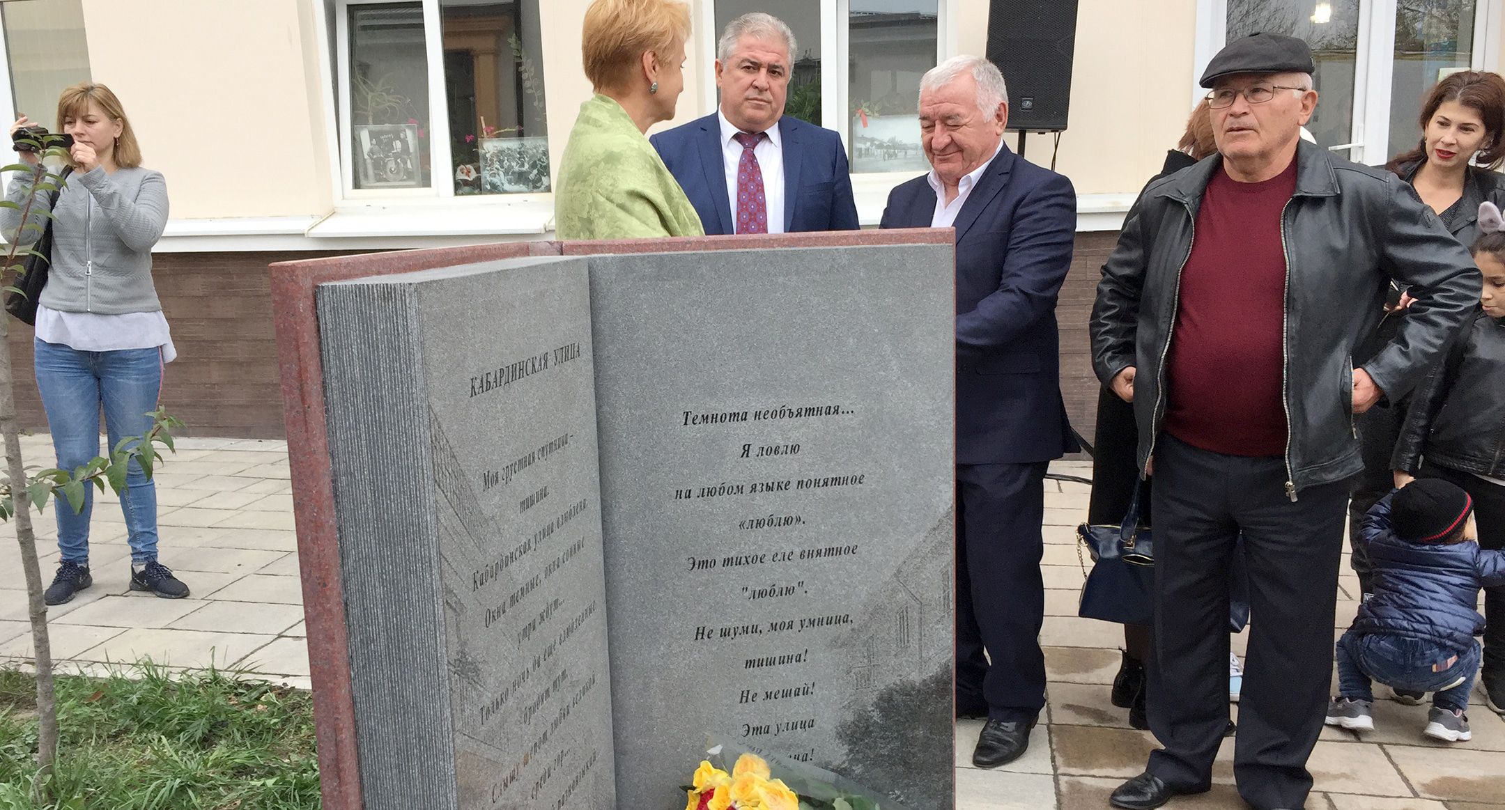 Председатель Общества книголюбов Кабардино-Балкарии Наталья Шинкарева рассказала, что изначально задумывалось установить настенную доску со стихами поэта. "Но нам разрешили больше - установить эту доску на земле", - сказала она.