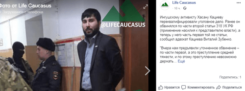 "Кавказский узел" также писал, что в сентябре следствие смягчило обвинение участнику протестных акций в Магасе Адаму Бадиеву.