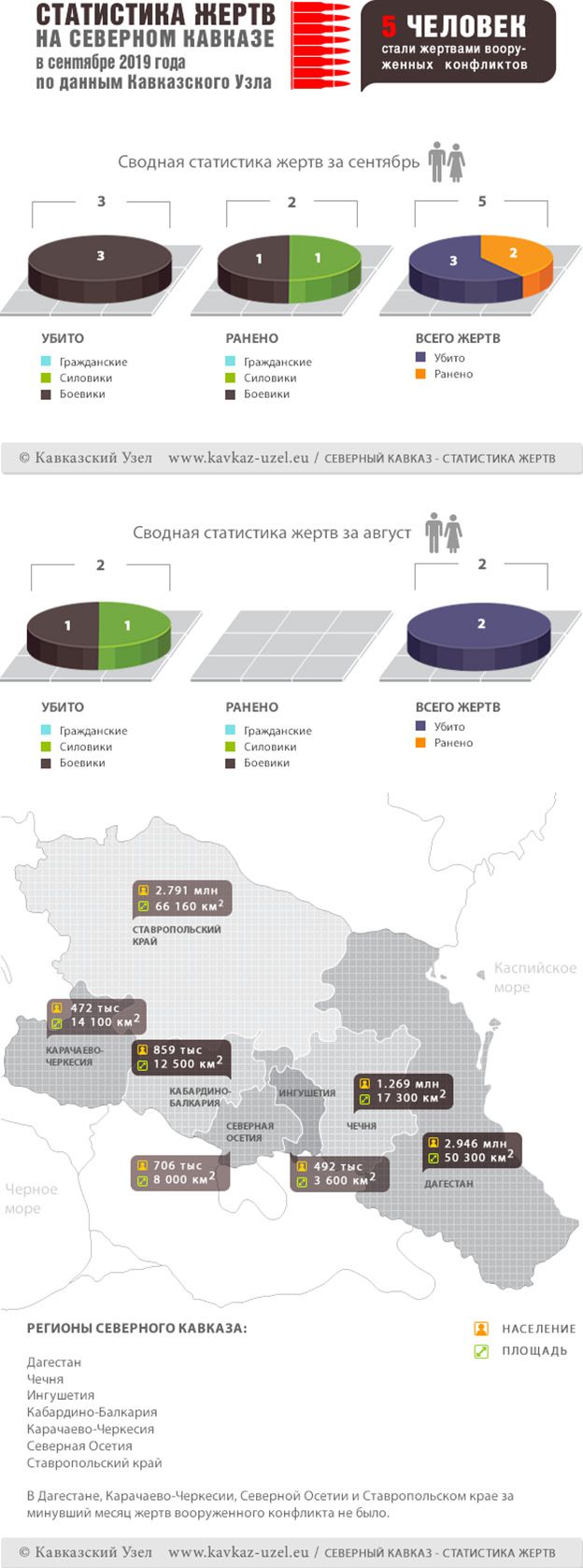 Инфографика. Статистика жертв на Северном Кавказе в сентябре 2019 года по данным Кавказского Узла