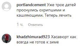 "Заранее по новостям говорили, что будет снег, неужели нельзя подготовиться к зиме. Чуть ветер, дождь, снег – Хасавюрт вымирает. Хоть один раз нормально сделайте свою работу, на качественные материалы потратьтесь, чтобы каждый раз не менять одну и ту же сеть. Нормальный трансформатор поставьте, надоело одно и тоже каждый раз. Уже целый день прошел, до сих пор нет света. Стыдно должно быть", – высказал свое мнение пользователь с ником sportivnaya.forma.