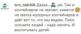 По состоянию на 17.00 мск под сообщением размещено два комментария. "Там и контейнеров не хватает, кажется. Нехватка мусорных контейнеров и даёт вот то, что мы видим. Плюс сознание людей надо менять. И воспитывать детей", - написал, в частности, пользователь eco_nalchik.