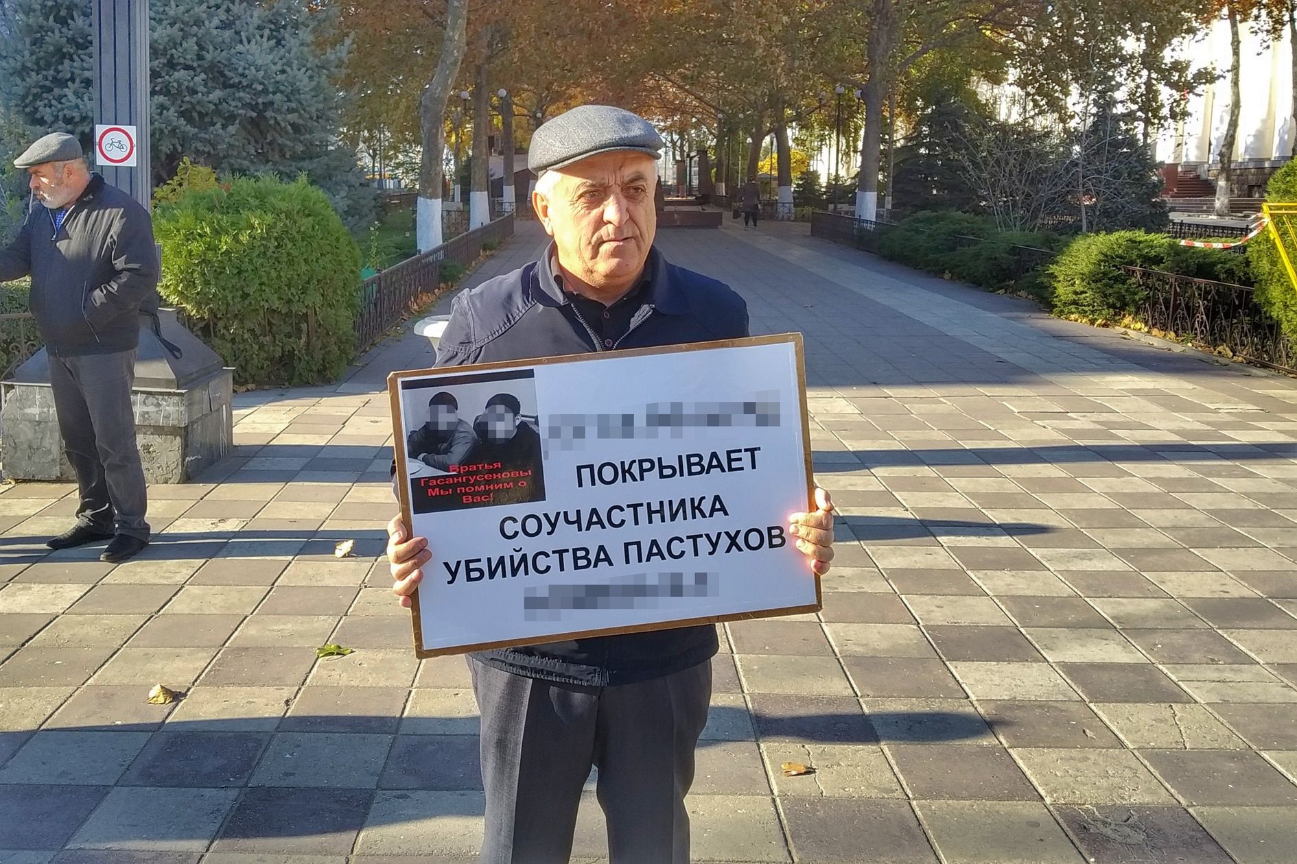 Как писал "Кавказский узел", отец убитых братьев-пастухов Муртазали Гасангусейнов с 14 ноября проводит ежедневные пикеты с требованием уволить и привлечь к уголовной ответственности силовика, который на момент убийства занимал должность начальника отдела полиции по Шамильскому району и отчитался тогда об убийстве двух боевиков. Он настаивает на встрече с главой республиканского управления Следкома. Сегодня Муртазали Гасангусейнов и активист Джамбулат Гасанов вышли на третью подряд акцию протеста к комплексу зданий МВД и УФСБ Дагестана в Махачкале.