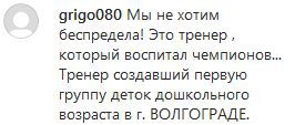 "Мы не хотим беспредела! Это тренер, который воспитал чемпионов... Тренер, создавший первую группу деток дошкольного возраста в г. Волгограде", - написал, в частности, grigo080.