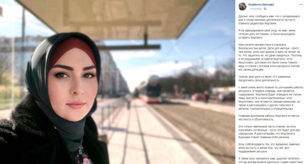 Напомним, 14 июля издание "Фортанга" сообщило о блокировке своего сайта (fortanga.org). После того как редакция удалила комментарий с запрещенной информацией, сайт был разблокирован. Муцольгов и Евлоева связали блокировку с арестом журналиста Рашида Майсигова. Евлоева также рассказала, что ранее была вынуждена покинуть редакцию "Фортанги", так как столкнулась с угрозами в адрес своей семьи.