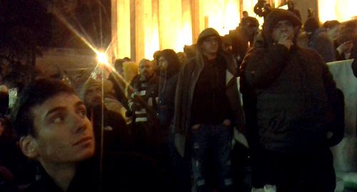 Участники акции протеста вечером 25 ноября после шествия начали пикет парламента, расположились на ночь перед всеми тремя его входами. Активисты заявили, что не намерены пропускать сегодня на пленарное заседание депутатов парламента, передает корреспондент "Кавказского узла", присутствовавшая на месте событий.