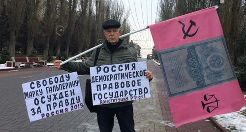 Шесть активистов - Тамара Гродникова, Галина Тихенко, Анатолий Болтыхов, Владимир Васильченко, Елена Шеина и Ольга Карпухнова – провели сегодня в центре Волгограда двухчасовые одиночные пикеты с требованием освободить осужденного в Подмосковье Марка Гальперина, передал с места событий корреспондент "Кавказского узла".