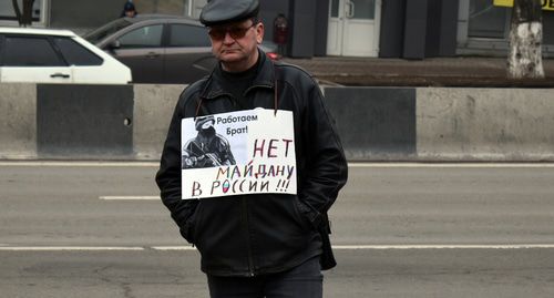 У здания суда стоял активист "Национально-освободительного движения" с плакатом с надписью: "Работаем, брат! Нет майдану в России!". Полицейский отвел его в сторону, однако через несколько минут пикетчик вернулся.