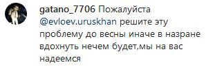 "Так держать, все верно!" – написал archakov.ing. "Пожалуйста, решите эту проблему до весны, иначе в Назрани вдохнуть нечем будет, мы на вас надеемся", - обратился к мэру пользователь gatano_7706.