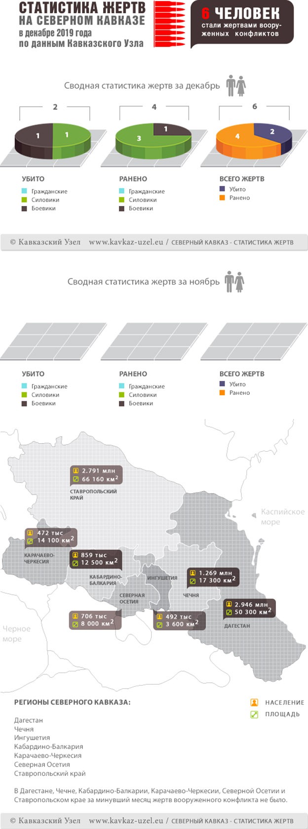 Инфографика. Статистика жертв на Северном Кавказе в декабре 2019 года по данным Кавказского узла