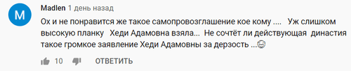 "Уж слишком высокую планку Хеда Адамовна взяла [...] Не сочтёт ли действующая династия такое громкое заявление Хеды Адамовны за дерзость?" - прокомментировала Madlen.