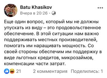 Республиканским властям важно поддерживать местных производителей, заявил глава Калмыкии Бату Хасиков. "Еще один вопрос, который мы не должны упускать из виду – это продовольственное обеспечение. В этой ситуации нам важно поддерживать местных производителей, помогать им наращивать мощность. Со своей стороны обеспечим им поддержку в виде льготных кредитов, микрозаймов, компенсации части затрат", – написал он на своей странице в Facebook 2 апреля.