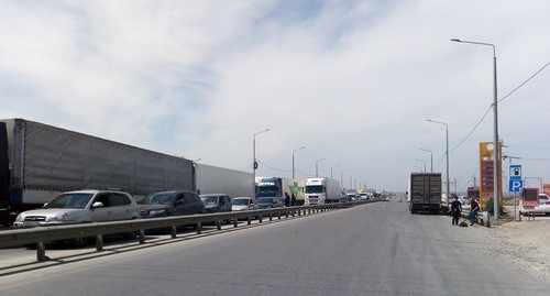 Дорога в объезд Махачкалы открыта, но и там образовался затор из большегрузов. Водитель одной из фур около 13.37 мск 20 апреля рассказал корреспонденту "Кавказского узла", что около часа стоит у Махачкалы на участке федеральной трассы между Кизилюртом и Дербентом. "Мне сейчас не нужно в Махачкалу. Я хотел ее объехать, чтобы попасть в Каспийск, но вынужден стоять в пробке. За час я проехал всего лишь 50 метров", - посетовал водитель.