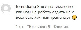 "Я все понимаю, но как нам на работу ездить, не у всех есть личный транспорт", - поинтересовалась temi.diana.