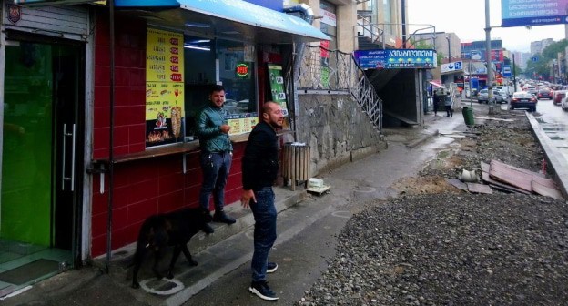 Корреспондент "Кавказского узла" прошел по улицам двух районов Тбилиси - Глдани и Мухиани. По улице Гобронидзе в Мухиани работают цветочный магазин и бюро ритуальных услуг. Соседние с этими павильонами пивная и швейное ателье были закрыты.