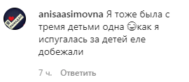 "Меня чуть крыша не убила", – написала в комментарии к видео пользователь соцсети dukuev56. "Я тоже была с тремя детьми одна. Как я испугалась за детей, еле добежали", - написала anisaasimovna.