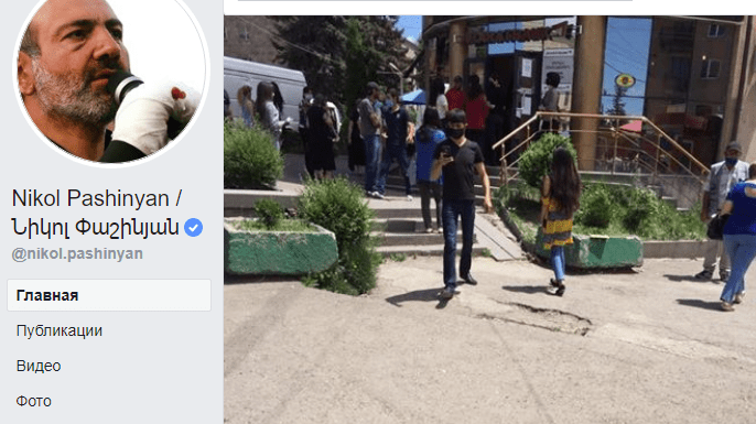 Премьер-министр Никол Пашинян 2 июня призвал пользователей Facebook присылать на его официальную страницу в соцсети свидетельства нарушений правил эпидемиологической безопасности с указанием, в частности, места и времени. Эта публикация главы правительства набрала более 10 тысяч отметок, свыше 2,6 тысячи комментариев и около 700 репостов.