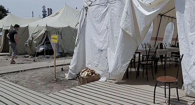 Ранее жители палаточного лагеря жаловались на качество питания, жару и неопределенность с возвращением на родину. "Я сижу в своей машине, потому что под открытым солнцем стоять невозможно, а в палатках нечем дышать", - сообщил гражданин Азербайджана. Он заявил, что вынужден сам покупать себе еду, поскольку не может питаться тем, что дают в столовой. Другой житель лагеря Эльшан Мухтаров рассказал, что еду в столовой дают три раза в день, но те, у кого есть деньги, сами покупают себе продукты.