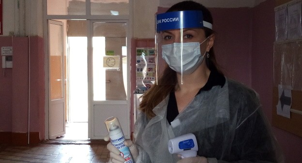 Каждые два часа помещение обрабатывается дезинфицирующими средствами, рассказал корреспонденту "Кавказского узла" председатель участковой избирательной комиссии Руслан Машуков.