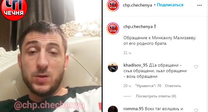 Видеоролик с извинениями молодого мужчины, представившегося братом блогера Минкаила Мализаева, опубликован вечером 9 июля в нескольких чеченских пабликах в Instagram. На кадрах видео, озаглавленного «Обращение к Минкаилу Мализаеву от его родного брата», молодой мужчина, сидящий на диване, после слов приветствия на чеченском языке заявляет, что Минкаилу Мализаеву никто не угрожал.