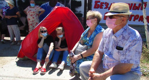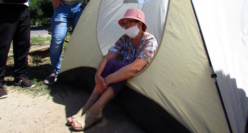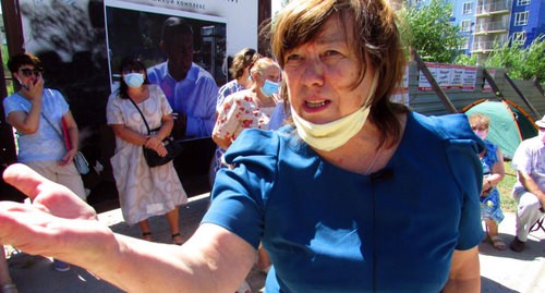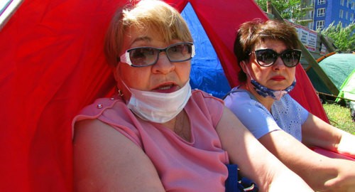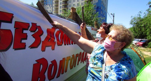 Мать-одиночка, бухгалтер Ольга Степанишина, купившая однокомнатную квартиру в строящемся доме за 1,4 млн рублей, установила палатку у ворот стройплощадки и через корреспондента «Кавказского узла» обратилась к губернатору: «Я родила тут двух детей. Как мне жить? Кругом обман и коррупция. Я побоялась взять сюда детей. Они у друзей сейчас. А я буду жить вот в этой палатке».
