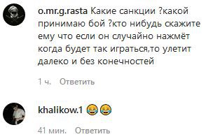 "Какие санкции? Какой принимаю бой? Кто-нибудь скажите ему, что, если он случайно нажмёт, когда будет так играться, то улетит далеко и без конечностей", – призвал o.mr.g.rasta.