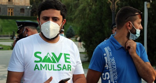 На майках, сумках и плакатах активистов была надпись Save Amulsar. Первоначально полицейские не хотели пропускать участников флешмоба в сквер, заявив, что призыв Save Amulsar имеет "политическую подоплеку". Не пускала полиция и журналистов. Правоохранители объяснили это тем, что парламент и прилегающая к нему территория – особо охраняемый объект, а у журналистов нет соответствующей аккредитации. Однако затем силовики пропустили в сквер как активистов, так и журналистов. При этом были записаны личные данные каждого журналиста, передал корреспондент "Кавказского узла".