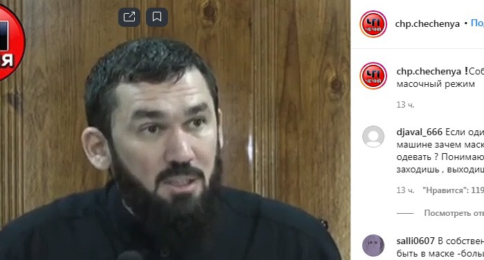 Несколько пользователей указали на отсутствие защитной маски у самого Даудова. "Не видит, что на себе (маски) нет?" – написал, в частности, salman_islamgiriev, слова которого перевел на русский язык корреспондент "Кавказского узла". "На себя надень маску", - порекомендовал Даудову nohcho_berlin. "А где твоя маска?" - задал Даудову вопрос michail_6699. "Где твоя (маска)?" – заочно обратился к Даудову adam.za.zaz, слова которого перевел с чеченского языка корреспондент "Кавказского узла".