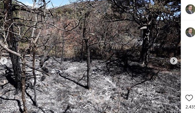 "Пожар разгорелся в полдень, высоко в горах. Мы слышали пять взрывов на участке длиной около двух километров. Один из них произошел в нескольких десятках метров от меня, на крутом склоне горы, когда я заливал морской водой тысячелетние можжевельники. Это однозначно поджог", - написал он у себя в Facebook.