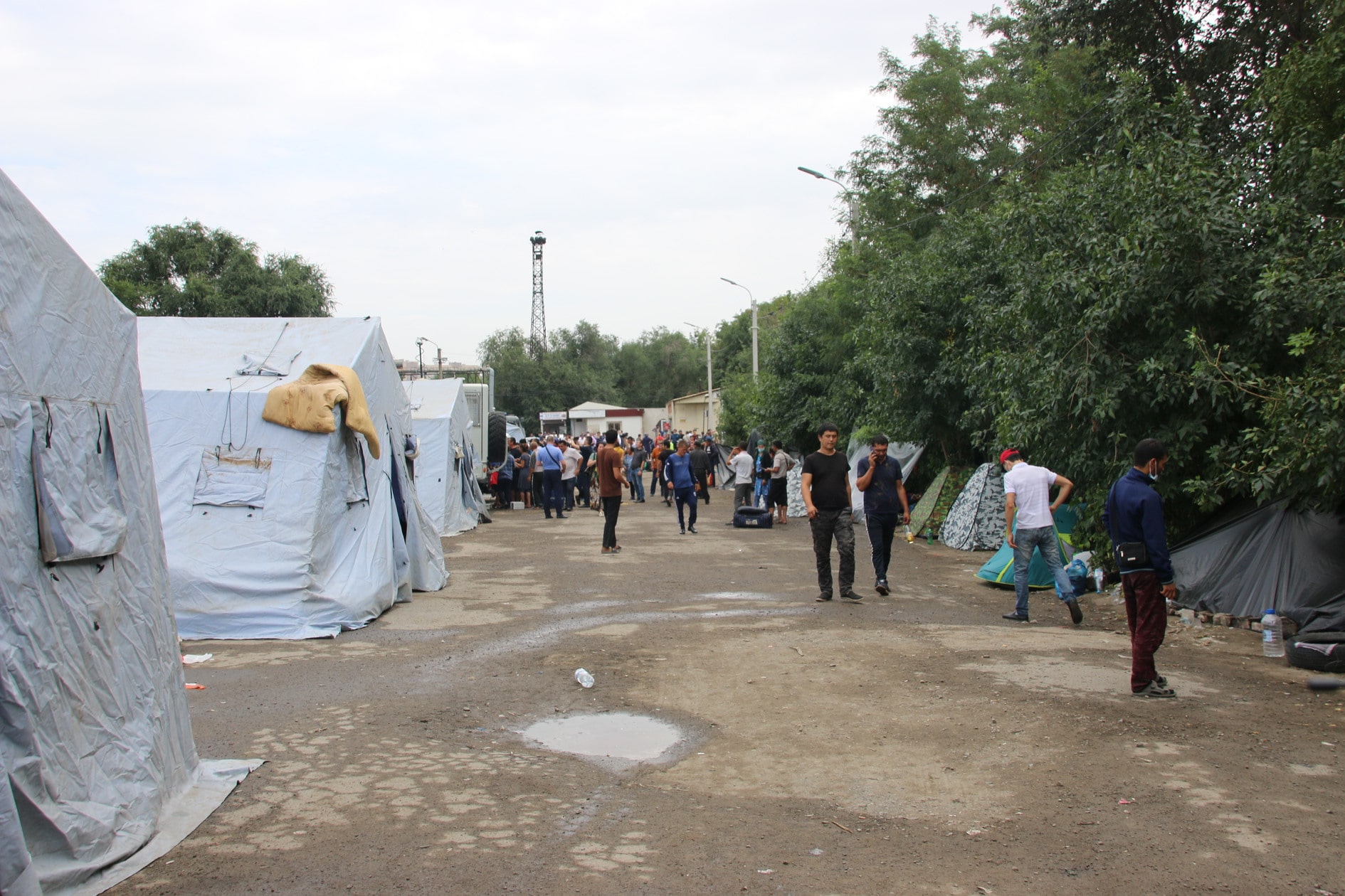 По словам другого сотрудника ведомства, ранее гражданам Узбекистана на вокзал были привезены шесть больших палаток. «Потому что не у всех были палатки, многие спали просто на земле», - уточнил он.