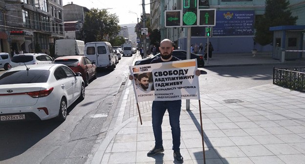 Как писал "Кавказский узел", коллеги и друзья арестованного журналиста "Черновика" Абдулмумина Гаджиева еженедельно проводят в Махачкале акции протеста с требованием освободить его. 14 сентября на пикет пришли шесть человек. 21 сентября в серии одиночных пикетов приняли участие девять человек.
