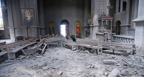 Служба чрезвычайной ситуации Нагорного Карабаха сообщила, что сегодня приблизительно в 14.00 и в 18.00 часов город Шуши подвергся интенсивному артиллерийскому обстрелу. От ракетных ударов серьезно пострадал собор Святого Христа Всеспасителя (Казанчецоц). Сейчас храм расчищают от обломков, передал корреспондент "Кавказского узла" информацию службы ЧС.