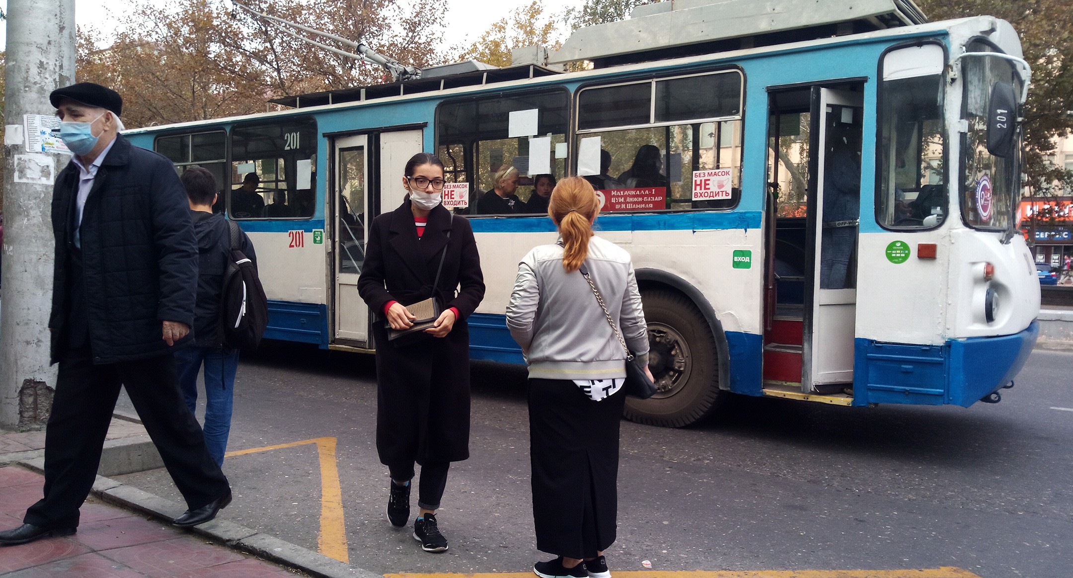 На автостанции в Махачкале строго следят за тем, чтобы люди надевали маски, рассказал корреспонденту "Кавказского узла" местный житель Батыр. "Я сегодня (21 октября) провожал жену в Буйнакск. Маршрутка не тронулась, пока все пассажиры не надели маски, хотя микроавтобус был полон. Парень, который собирает за проезд, предупредил, что пока все не наденут маски, маршрутка не поедет. Один из пассажиров сидел без маски [...] В итоге водитель попросил продавца масок дать ему одну. И после этого все поехали", - отметил он. При этом Батыр считает, что до людей необходимо доводить информацию о важности ношения масок, а не штрафовать их.