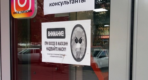 Объявления с просьбой надеть маски есть и на входе в супермаркеты, но этим рекомендациям также следуют единицы. Корреспондент "Кавказского узла" насчитал только четырех человек в масках среди нескольких десятков покупателей супермаркета "Зеленое яблоко" на проспекте Гамзатова. У двоих из них маска закрывала только рот. На входе стоял молодой человек, который предлагал посетителям обработать руки антисептиком. Там же можно было купить маску - за 10 рублей взрослую и за 19 рублей детскую. В супермаркете "Центральный" было немноголюдно, но все пять покупателей, находившихся в зале, были без масок. Персонал обоих торговых точек был в средствах защиты.