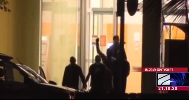 О том, что несколько человек вышли из отделения банка, написал и грузинский канал "Рустави 2". На кадрах, представленных телеканалом в 21.13 мск,  видно, как человек с поднятой рукой следует за тремя другими людьми, у которых связаны руки, за ними следом идет пятый мужчина.
