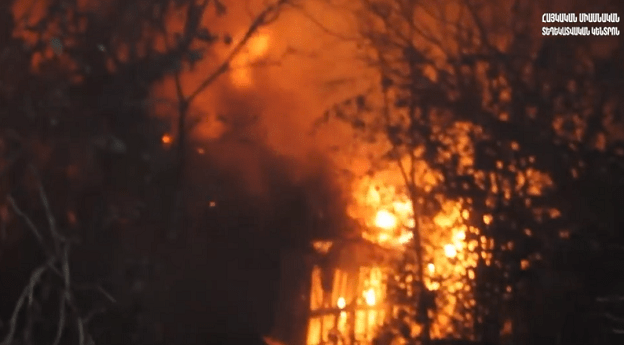 Три ракеты "Смерч" были выпущены в направлении Шуши. "Сейчас здесь горят два жилых дома. На месте работают пожарные. Жертв среди гражданского населения нет", - сказал сотрудник СЧС Нагорного Карабаха Унан Тадевосян.