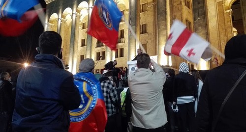 Акция протеста у здания парламента Грузии продолжается, несмотря на введенный из-за коронавируса комендантский час. Трое участников акции, пытавшиеся пронести дрова, задержаны силовиками.