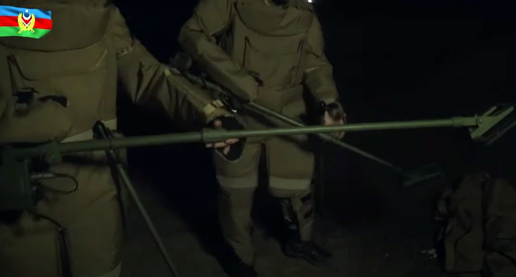 Минобороны Азербайджана разместило сегодня на своем YouTube-канале два видео о вхождении войск в Кельбаджарский район. На первом из них, озаглавленном как "Первые кадры из освобожденного от оккупации Кельбаджарского района", показан процесс экипировки саперов, которые затем выходят на дорогу с миноискателями. Видео снято в ночное время. Один из саперов устанавливает значок, предупреждающий о мине. Саперов прикрывают автоматчики, направляющие оружие в темноту. Затем демонстрируется серия взрывов, также произведенных ночью.